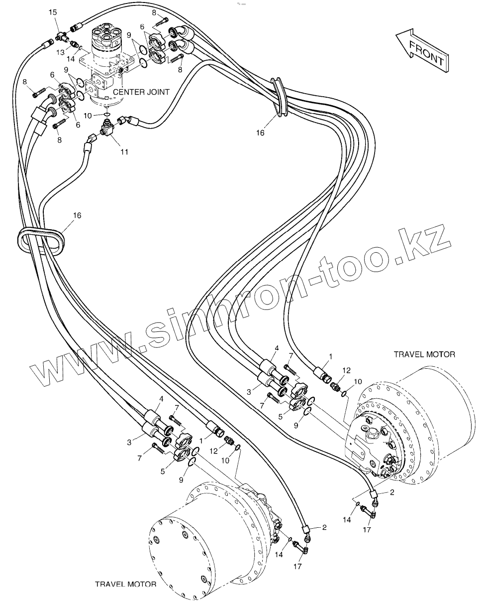 Каталог запасных частей к технике: Doosan DX225LCA. TRAVEL PIPING - STD (DX220A)