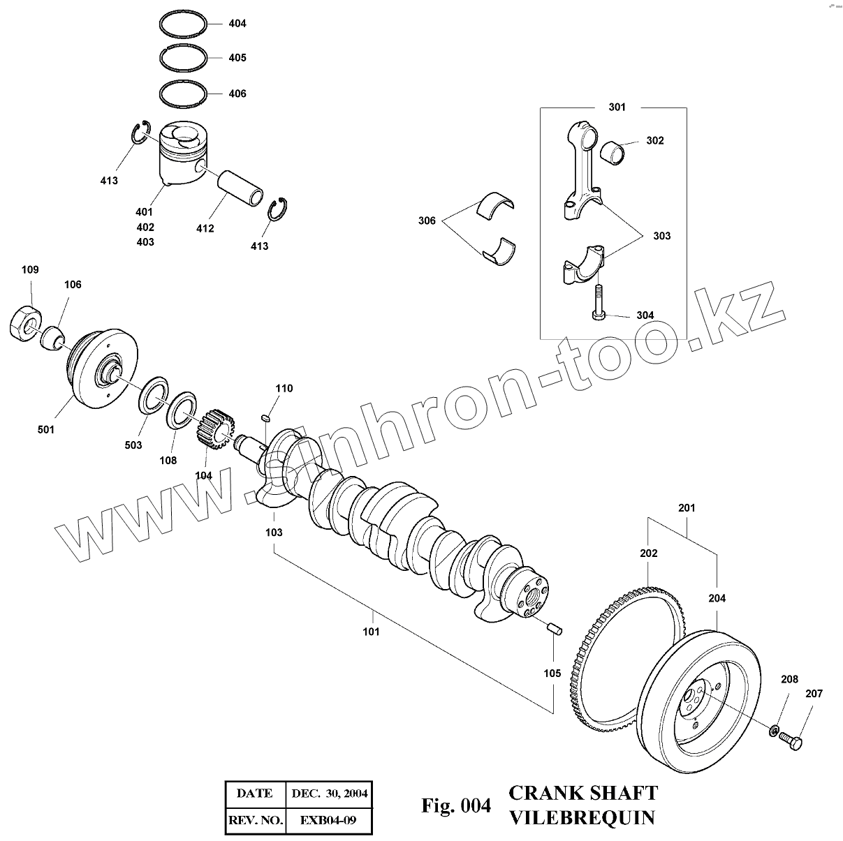 Каталог запасных частей к технике: Doosan Экскаватор SOLAR 140LC-V. 004 Вал коленчатый