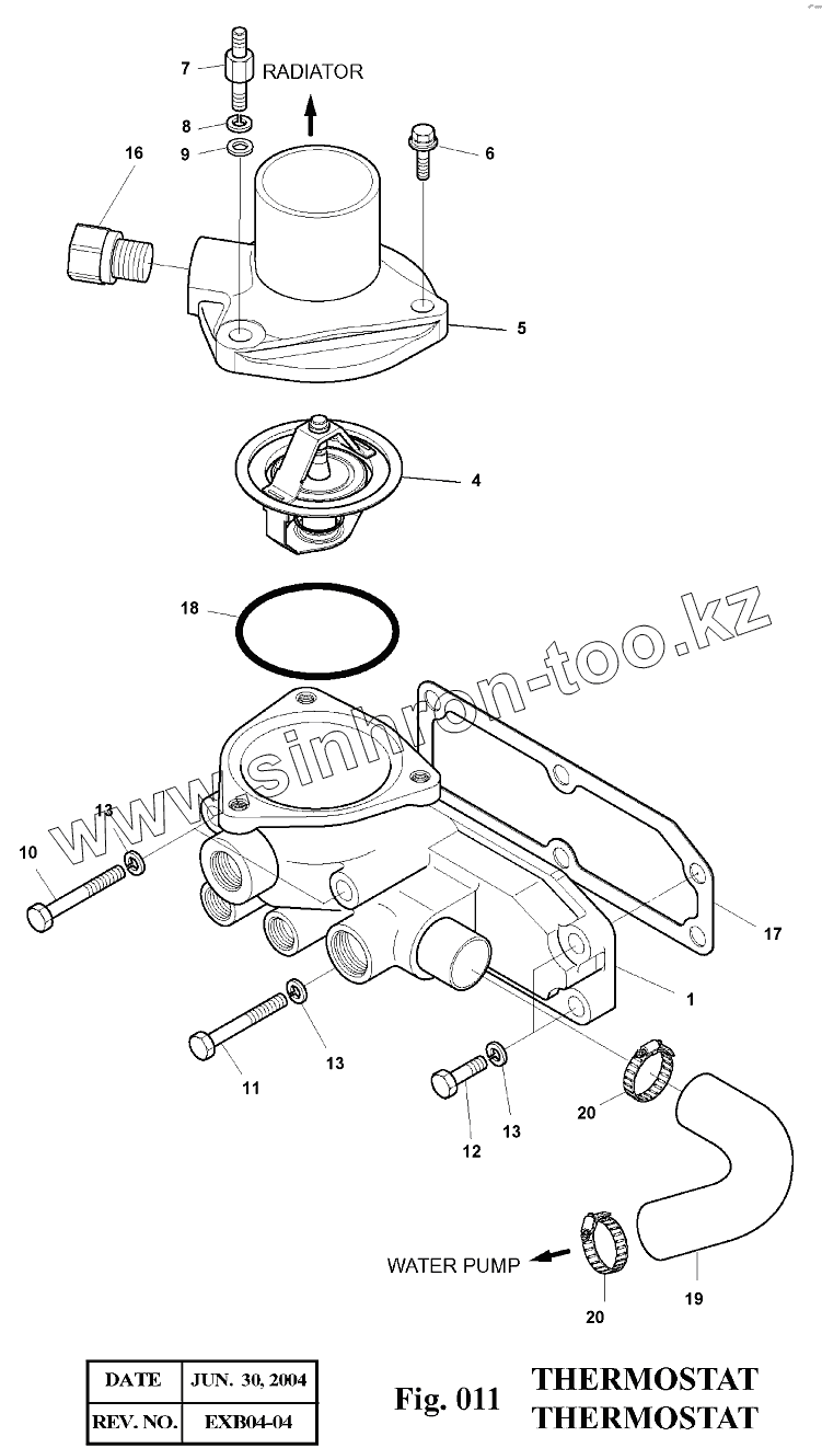 Каталог запасных частей к технике: Doosan Экскаватор SOLAR 140LC-V. 011 Термостат