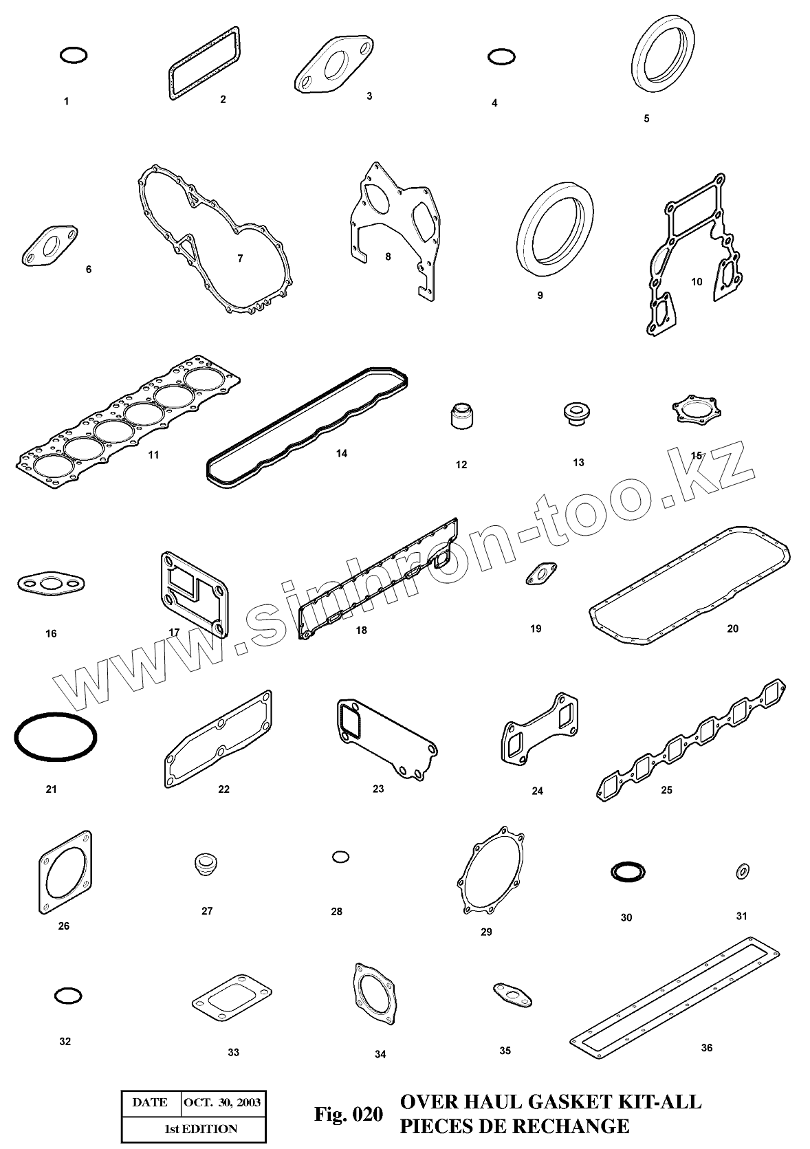 Каталог запасных частей к технике: Doosan Экскаватор SOLAR 140LC-V. 020 Комплект прокладок