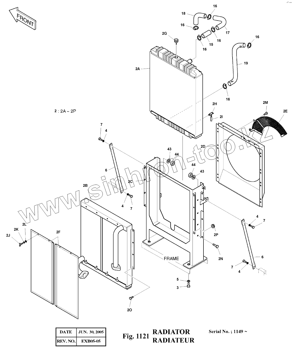 Каталог запасных частей к технике: Doosan Экскаватор SOLAR 140LC-V. 1121 Радиатор
