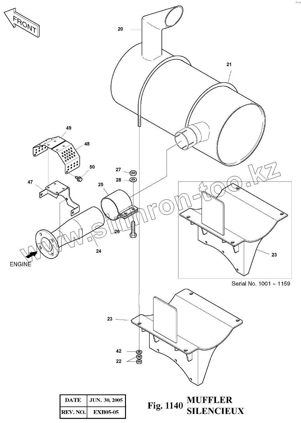 Каталог запасных частей к технике: Doosan Экскаватор SOLAR 140LC-V. 1140 Глушитель