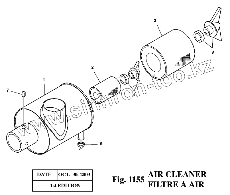 Каталог запасных частей к технике: Doosan Экскаватор SOLAR 140LC-V. 1155 Фильтр воздушный