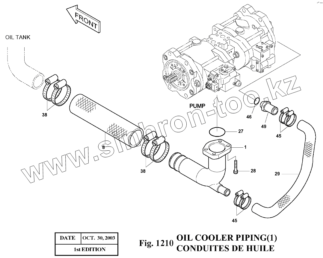 Каталог запасных частей к технике: Doosan Экскаватор SOLAR 140LC-V. 1210 Трубопроводы маслоохладителя
