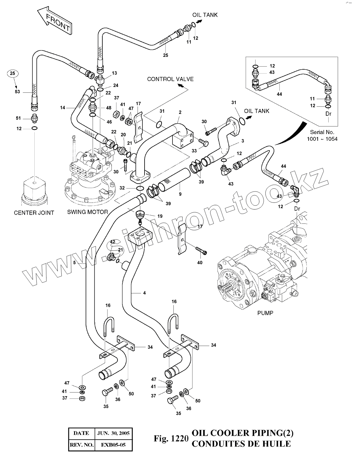 Каталог запасных частей к технике: Doosan Экскаватор SOLAR 140LC-V. 1220 Трубопроводы маслоохладителя