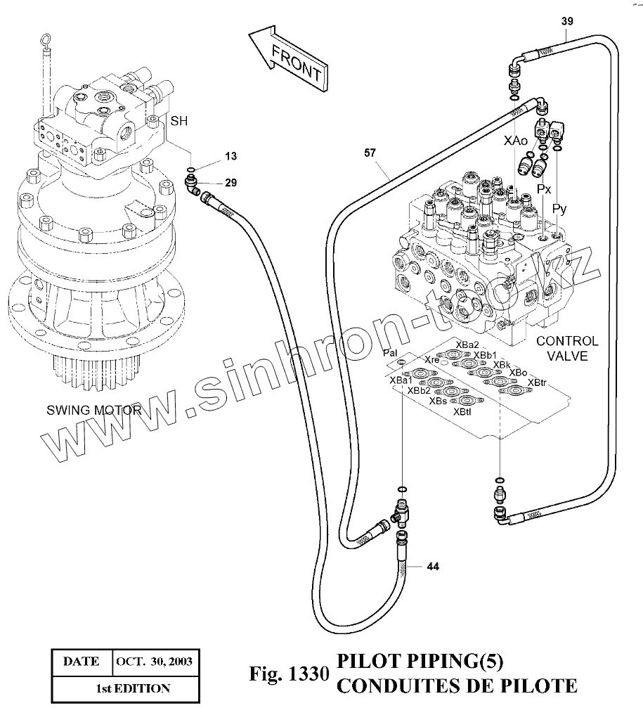 Каталог запасных частей к технике: Doosan Экскаватор SOLAR 140LC-V. 1330 Трубопроводы управления