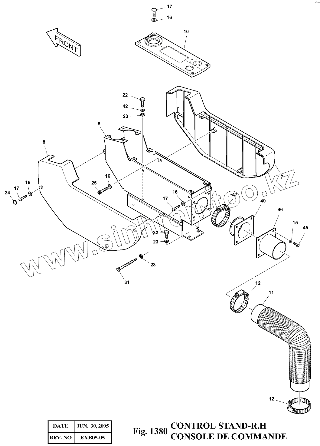 Каталог запасных частей к технике: Doosan Экскаватор SOLAR 140LC-V. 1380 Консоль управления правая