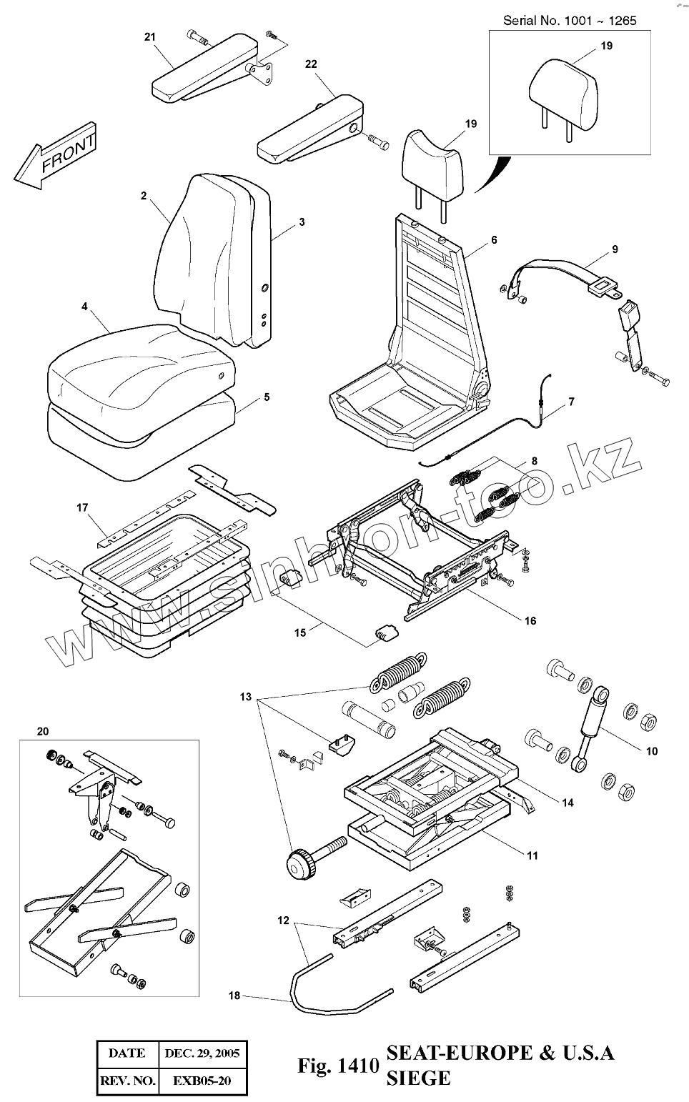 Каталог запасных частей к технике: Doosan Экскаватор SOLAR 140LC-V. 1410 Сиденье