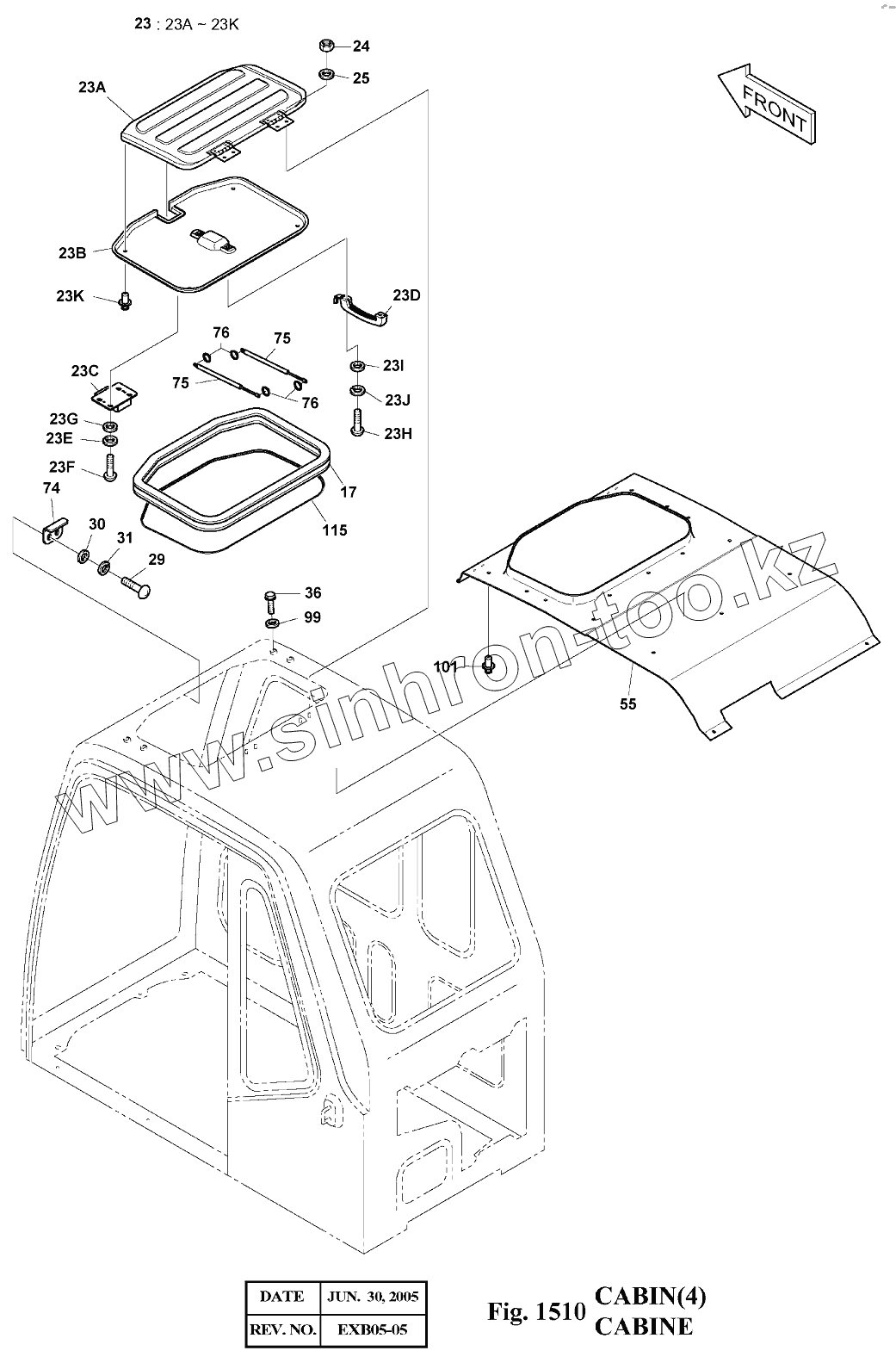 Каталог запасных частей к технике: Doosan Экскаватор SOLAR 140LC-V. 1510 Кабина