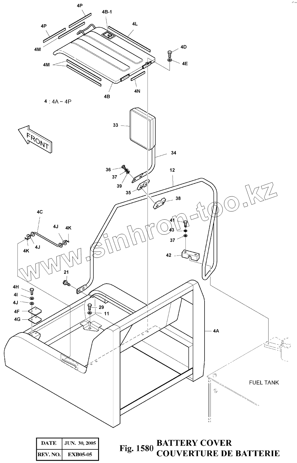 Каталог запасных частей к технике: Doosan Экскаватор SOLAR 140LC-V. 1580 Крышка аккумуляторной батареи