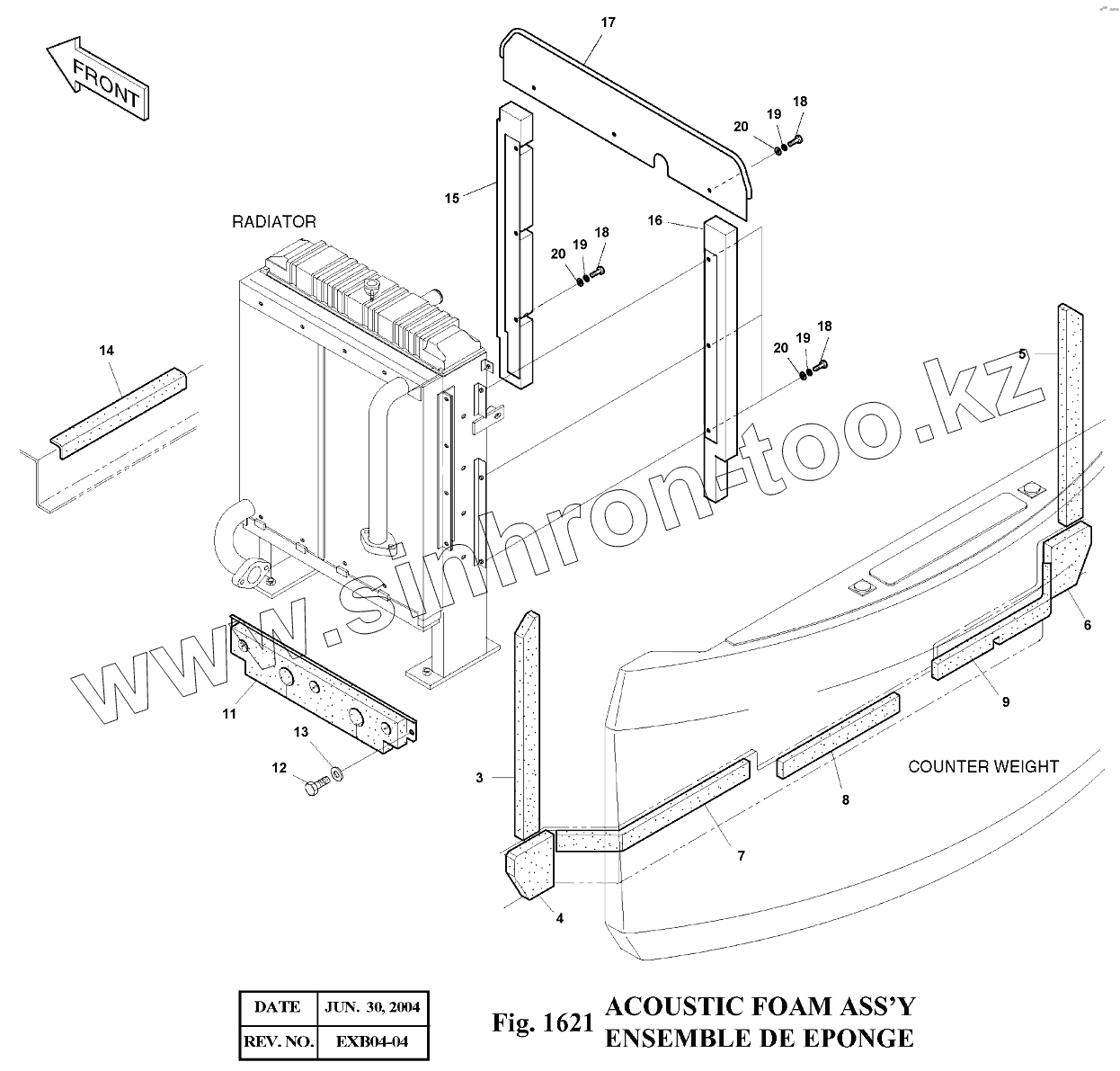 Каталог запасных частей к технике: Doosan Экскаватор SOLAR 140LC-V. 1621 Шумоизоляция