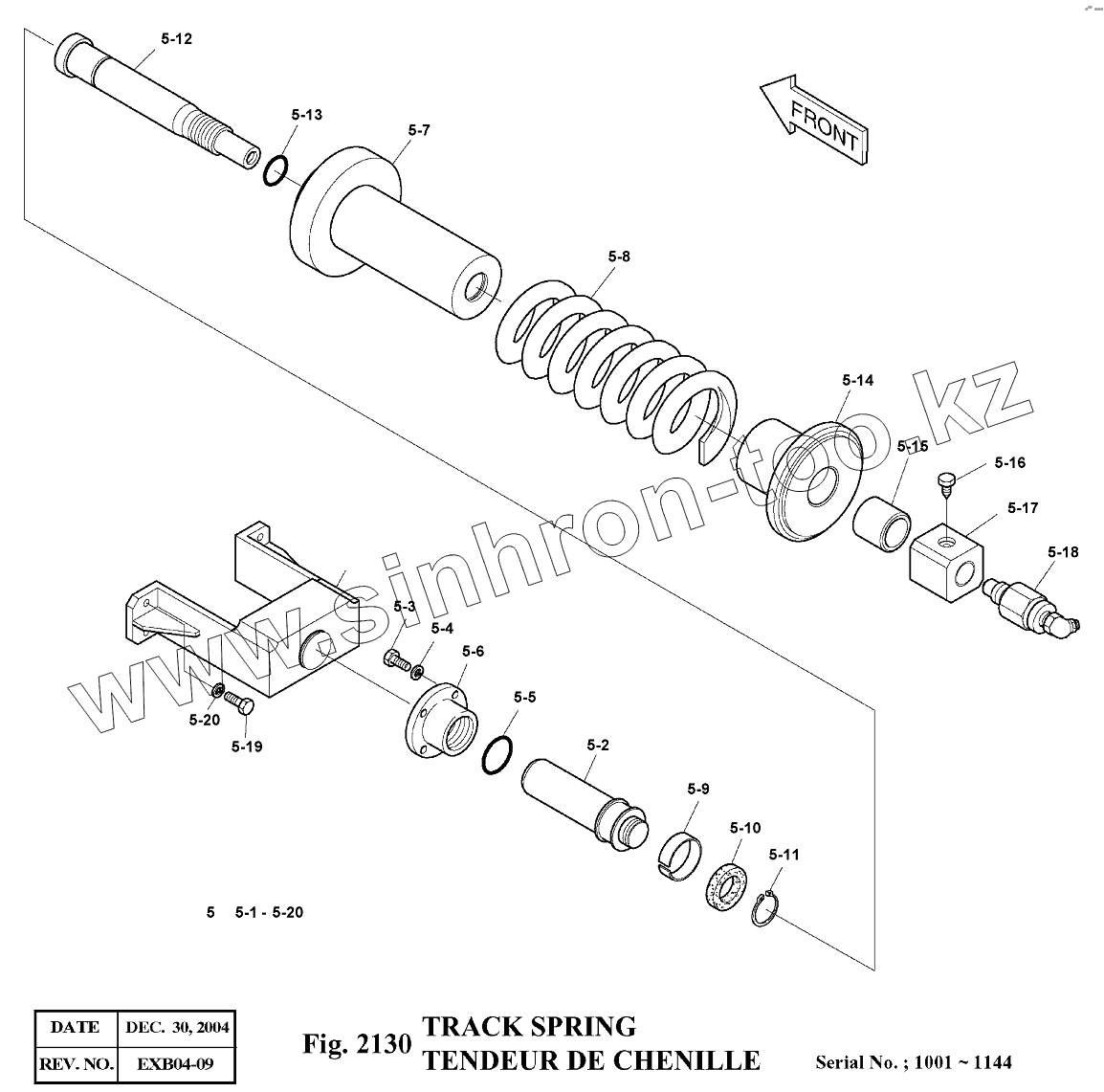 Каталог запасных частей к технике: Doosan Экскаватор SOLAR 140LC-V. 2130 Механизм натяжения