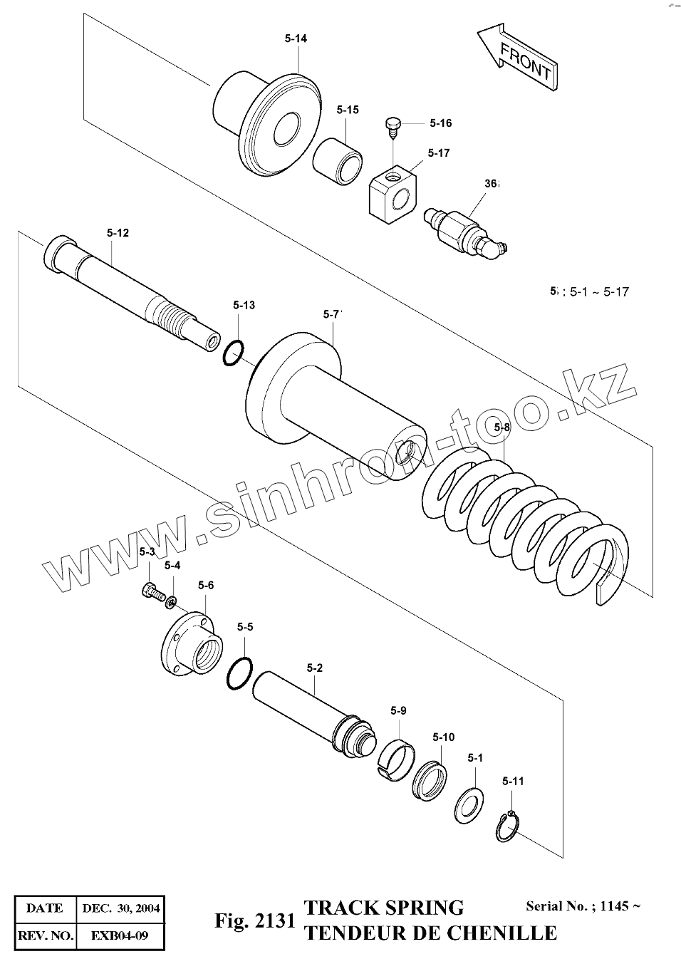 Каталог запасных частей к технике: Doosan Экскаватор SOLAR 140LC-V. 2131 Механизм натяжения