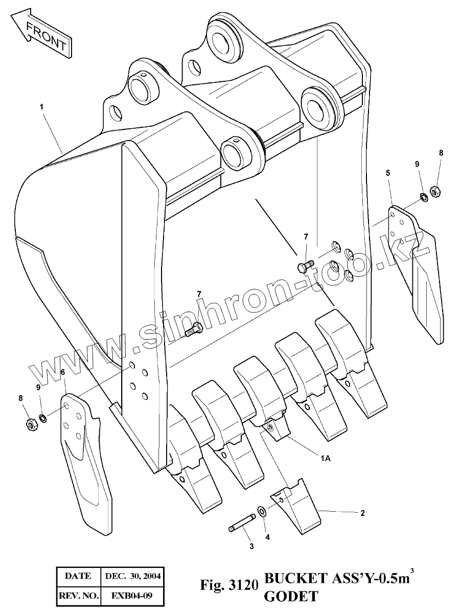 Каталог запасных частей к технике: Doosan Экскаватор SOLAR 140LC-V. 3120 Ковш