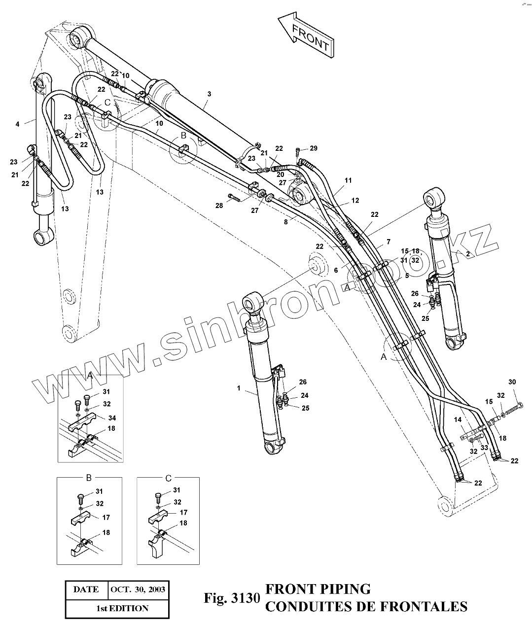 Каталог запасных частей к технике: Doosan Экскаватор SOLAR 140LC-V. 3130 Трубопроводы