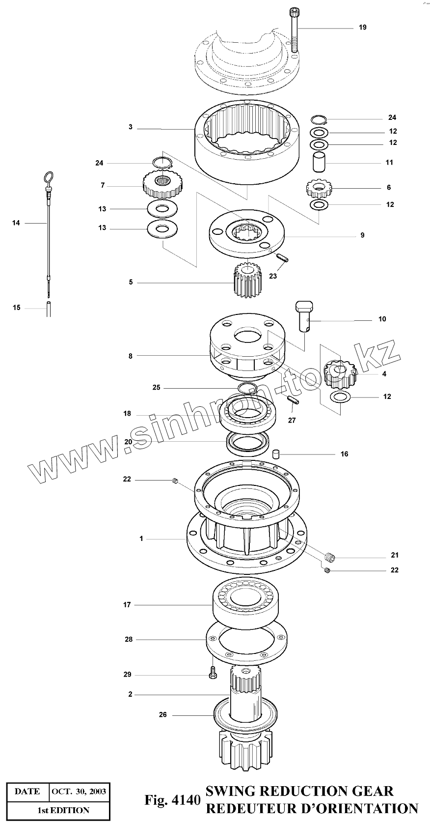 Каталог запасных частей к технике: Doosan Экскаватор SOLAR 140LC-V. 4140 Поворотный редуктор