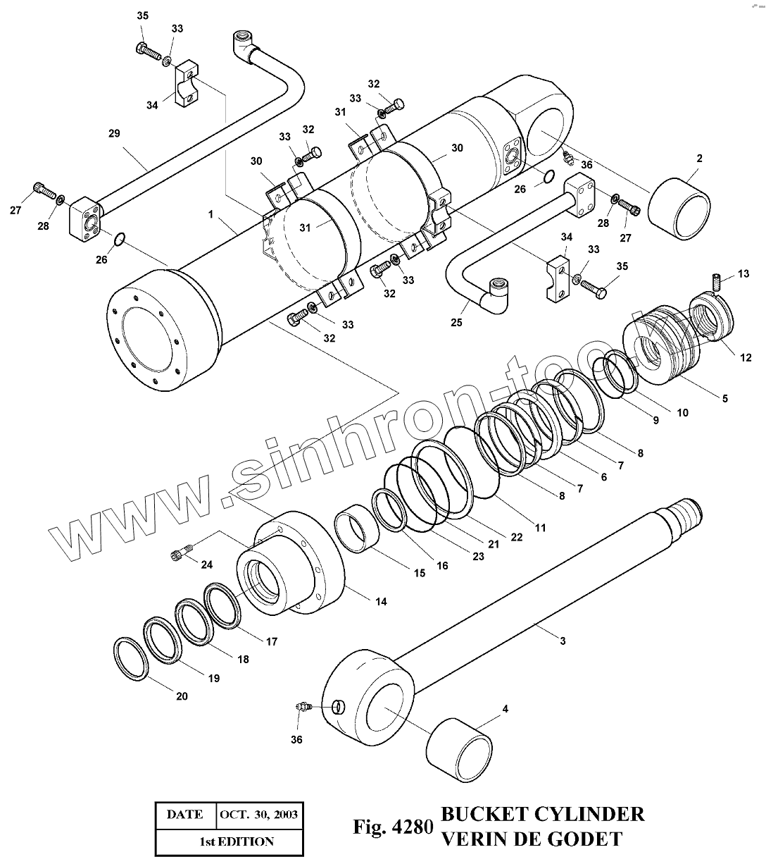 Каталог запасных частей к технике: Doosan Экскаватор SOLAR 140LC-V. 4280 Гидроцилиндр ковша