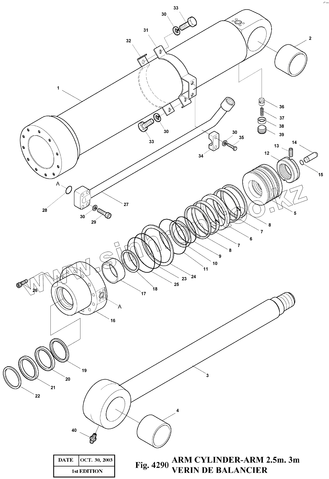 Каталог запасных частей к технике: Doosan Экскаватор SOLAR 140LC-V. 4290 Гидроцилиндр рукояти