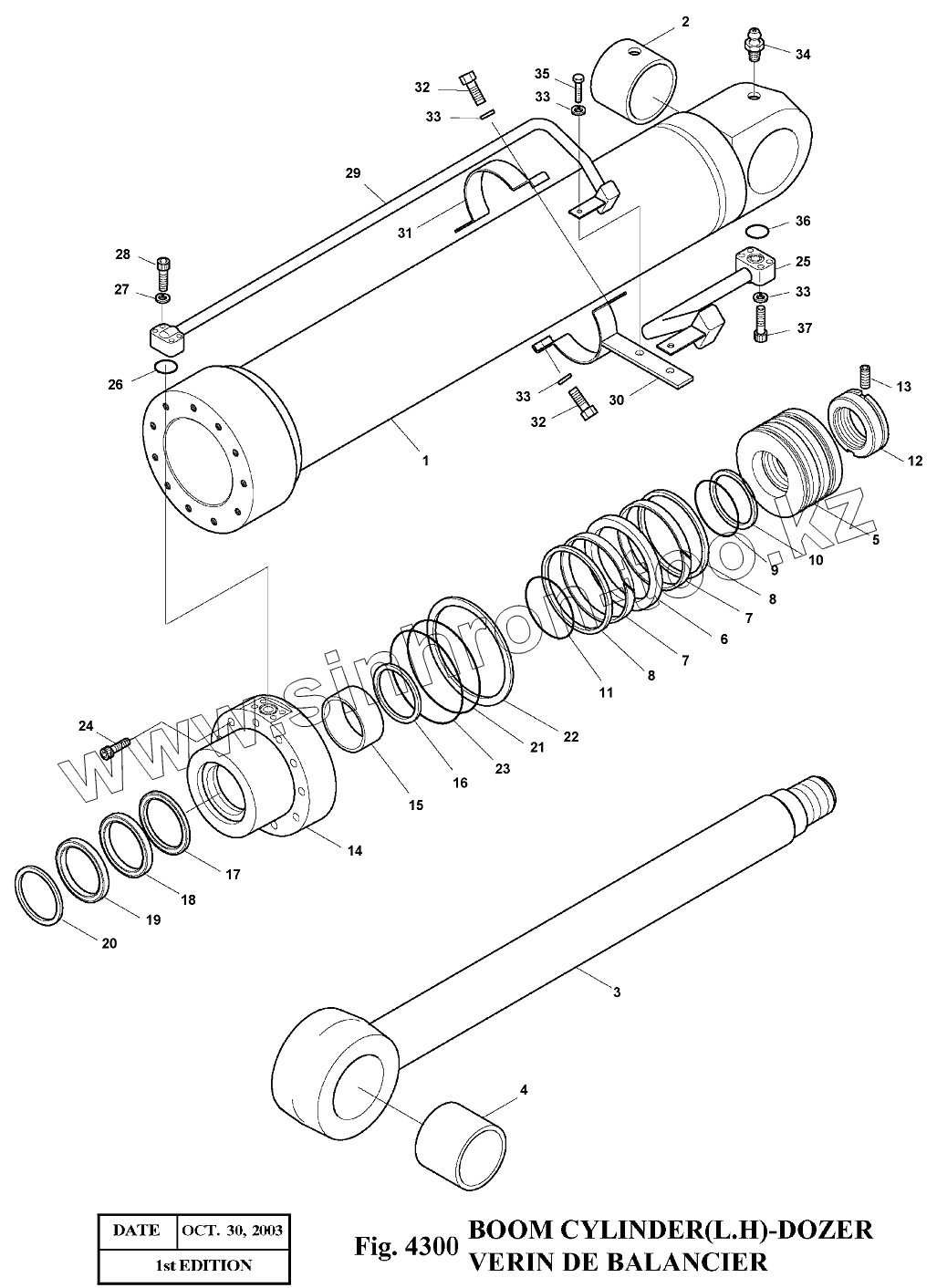 Каталог запасных частей к технике: Doosan Экскаватор SOLAR 140LC-V. 4300 Гидроцилиндр стрелы левый