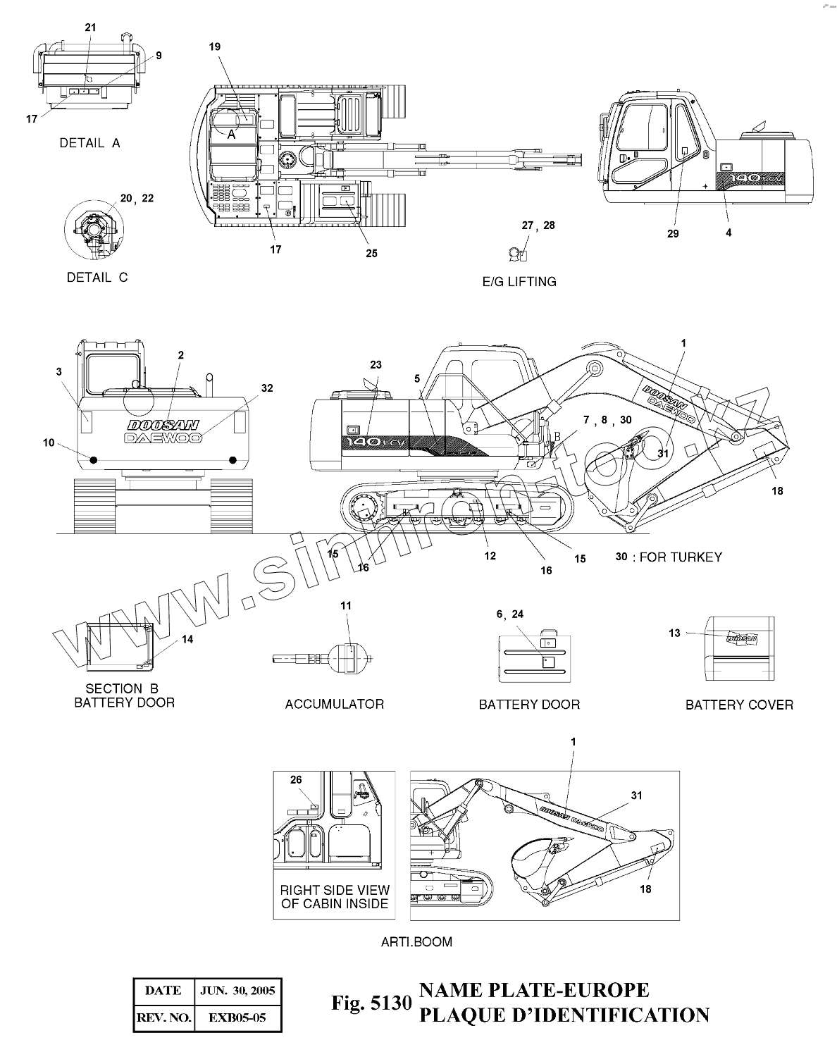 Каталог запасных частей к технике: Doosan Экскаватор SOLAR 140LC-V. 5130 Таблички