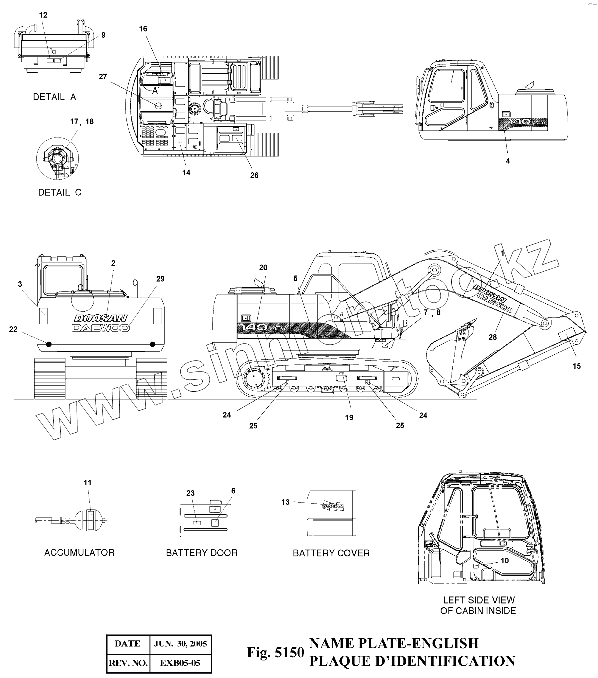 Каталог запасных частей к технике: Doosan Экскаватор SOLAR 140LC-V. 5150 Таблички