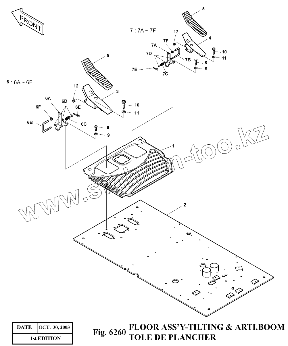 Каталог запасных частей к технике: Doosan Экскаватор SOLAR 140LC-V. 6260 Пол кабины