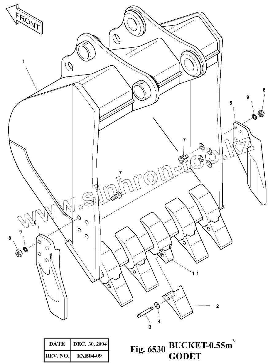 Каталог запасных частей к технике: Doosan Экскаватор SOLAR 140LC-V. 6530 Ковш