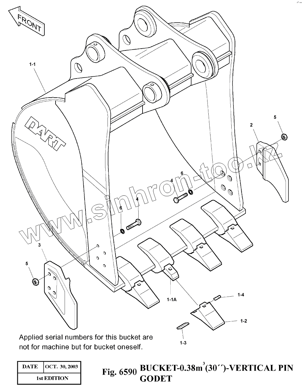 Каталог запасных частей к технике: Doosan Экскаватор SOLAR 140LC-V. 6590 Ковш