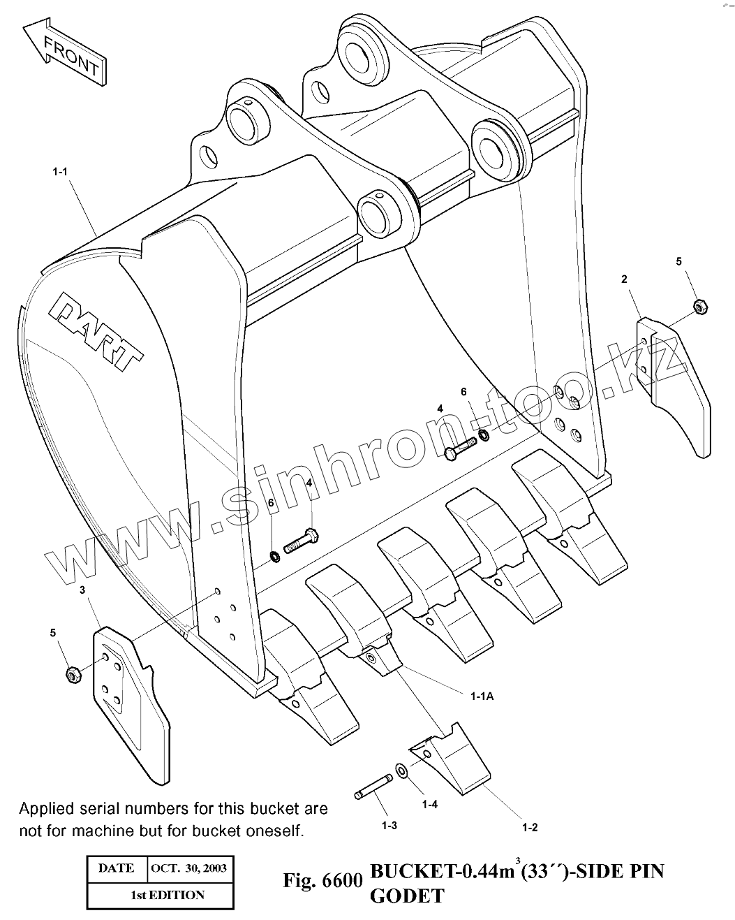 Каталог запасных частей к технике: Doosan Экскаватор SOLAR 140LC-V. 6600 Ковш