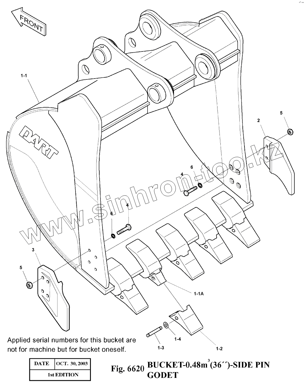 Каталог запасных частей к технике: Doosan Экскаватор SOLAR 140LC-V. 6620 Ковш
