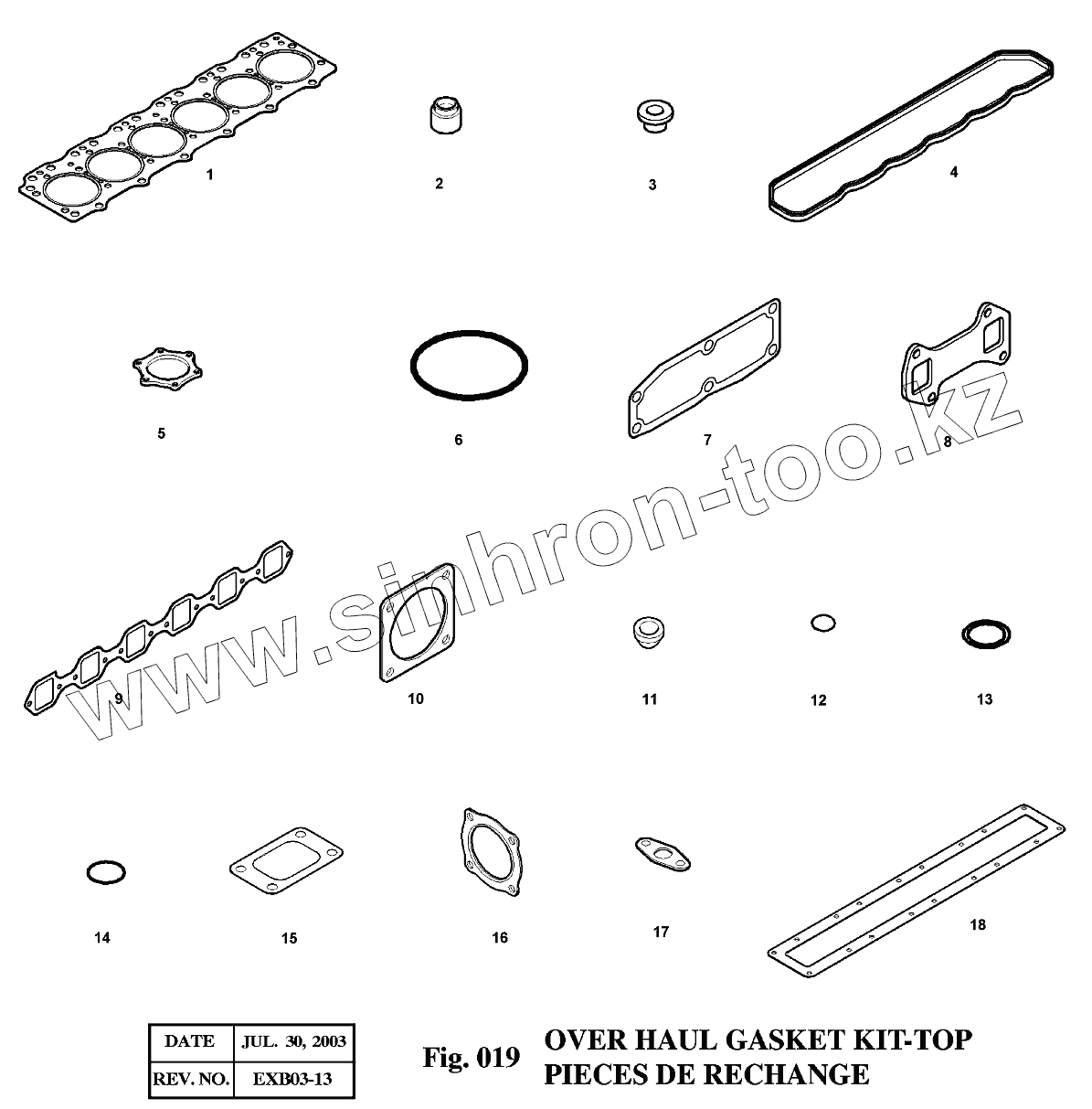 Каталог запасных частей к технике: Doosan Экскаватор SOLAR 175LC-V. 019 Комплект прокладок