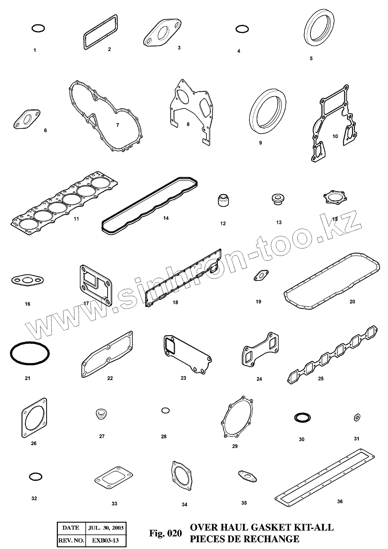 Каталог запасных частей к технике: Doosan Экскаватор SOLAR 175LC-V. 020 Комплект прокладок