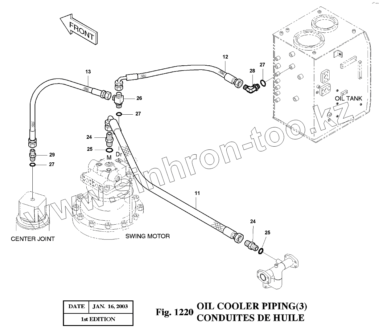 Каталог запасных частей к технике: Doosan Экскаватор SOLAR 175LC-V. 1220 Трубопроводы маслоохладителя