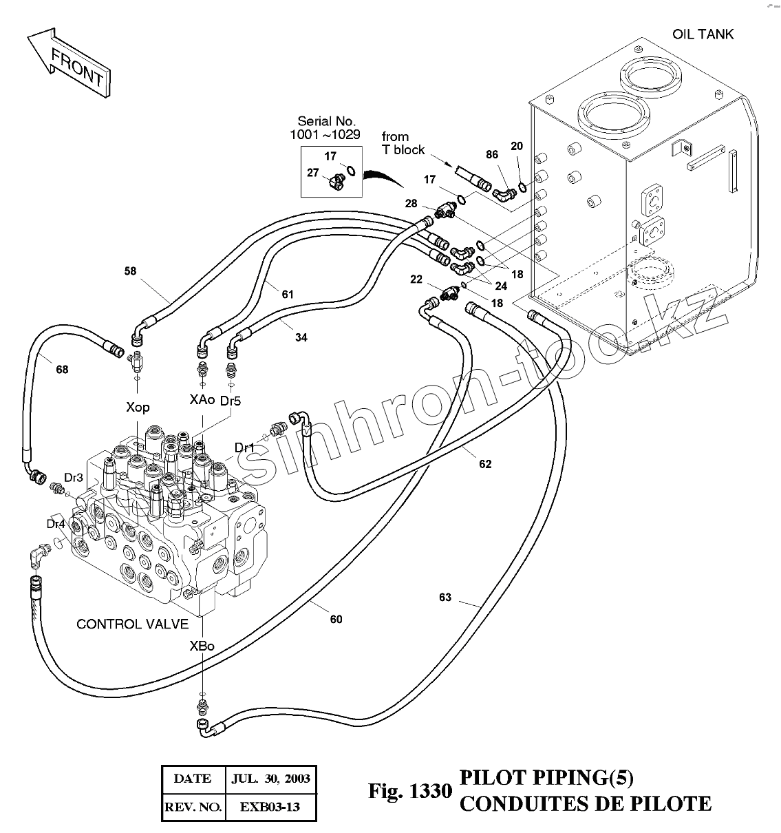 Каталог запасных частей к технике: Doosan Экскаватор SOLAR 175LC-V. 1330 Трубопроводы управления