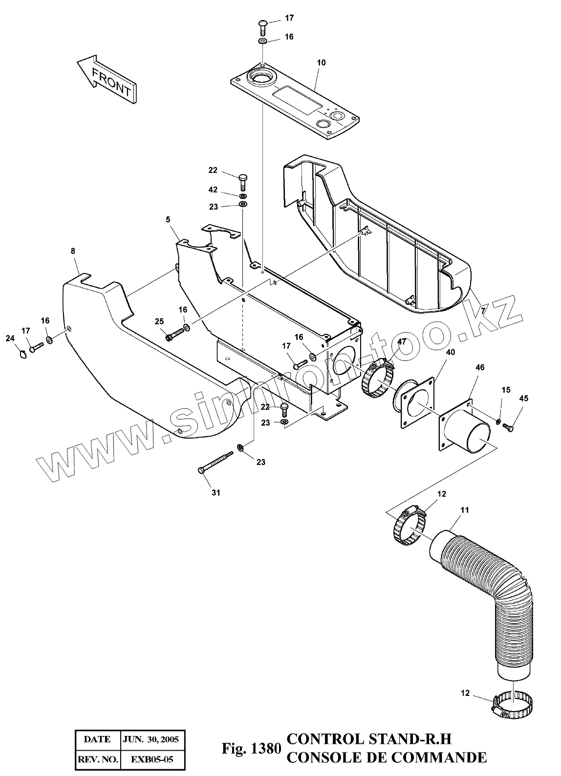 Каталог запасных частей к технике: Doosan Экскаватор SOLAR 175LC-V. 1380 Консоль управления правая