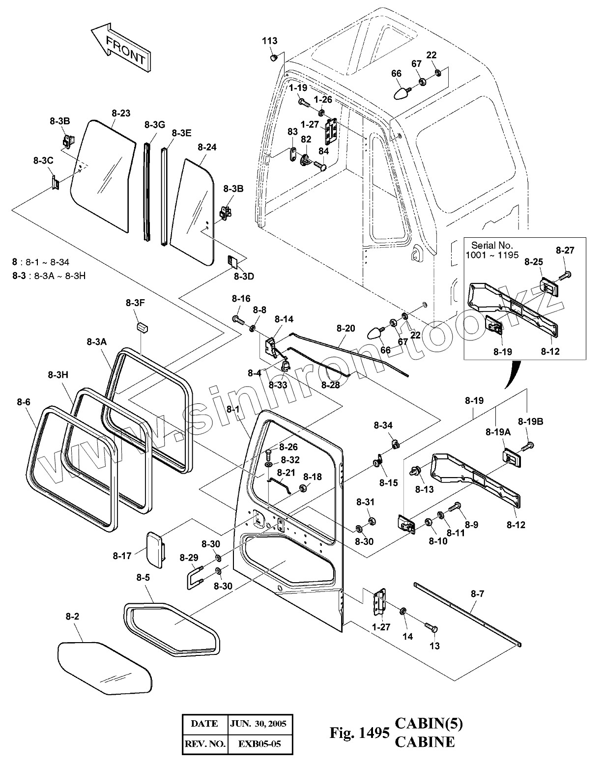 Каталог запасных частей к технике: Doosan Экскаватор SOLAR 175LC-V. 1495 Кабина
