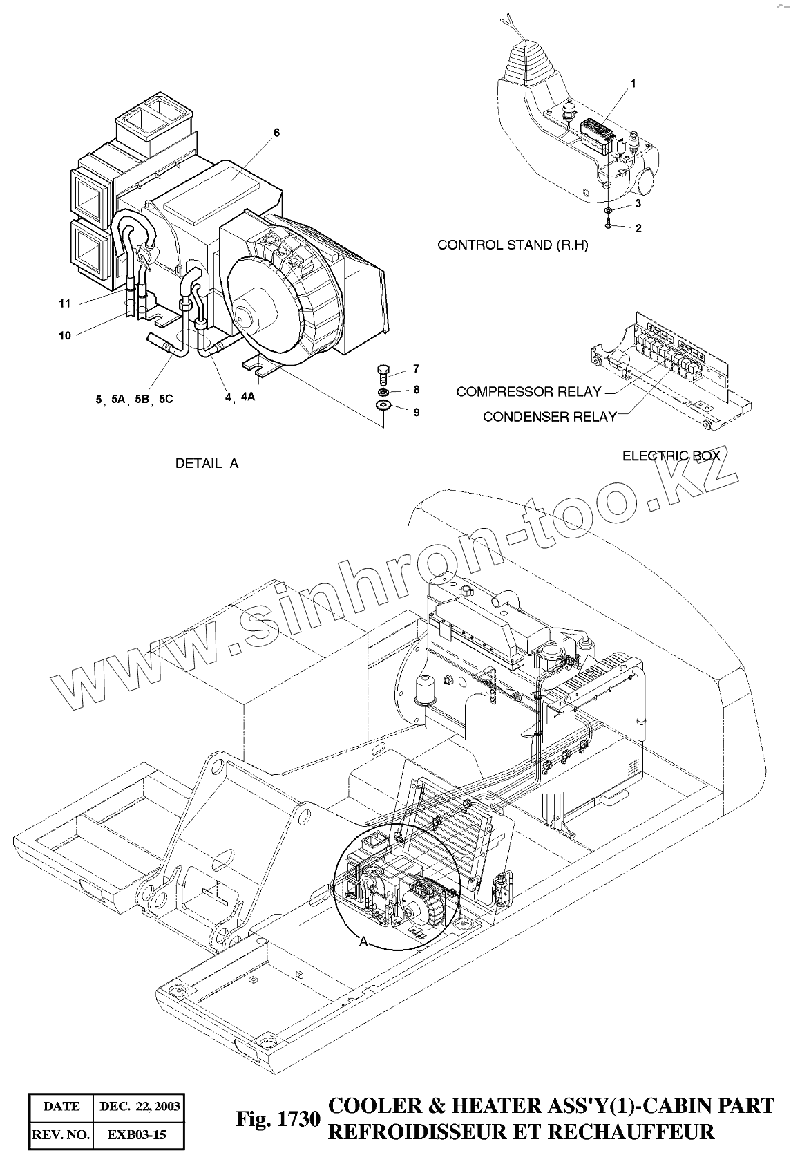 Каталог запасных частей к технике: Doosan Экскаватор SOLAR 175LC-V. 1730 Отопление и вентиляция