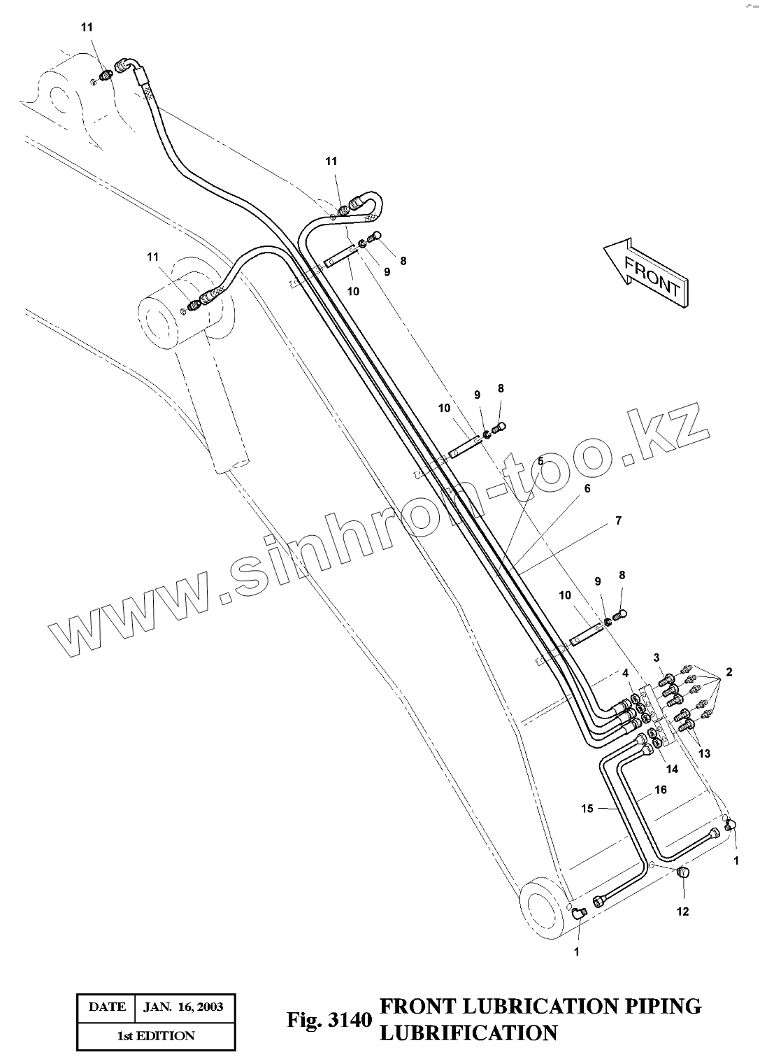 Каталог запасных частей к технике: Doosan Экскаватор SOLAR 175LC-V. 3140 Трубопроводы смазочные
