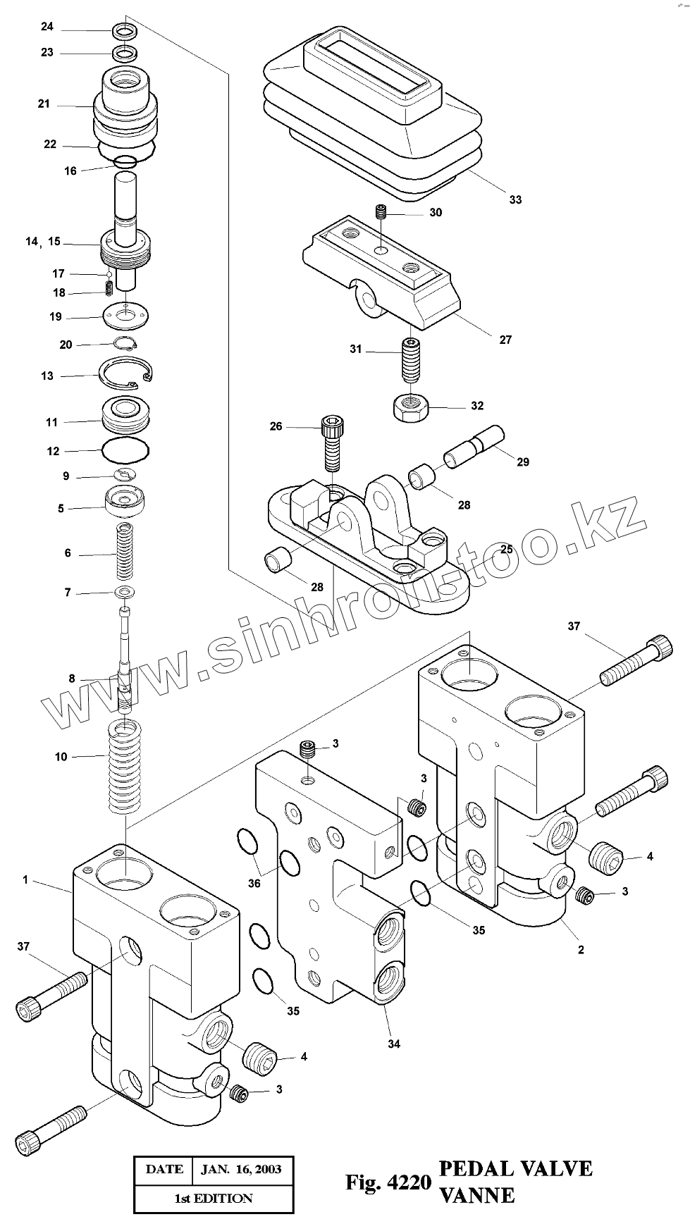 Каталог запасных частей к технике: Doosan Экскаватор SOLAR 175LC-V. 4220 Клапан педали