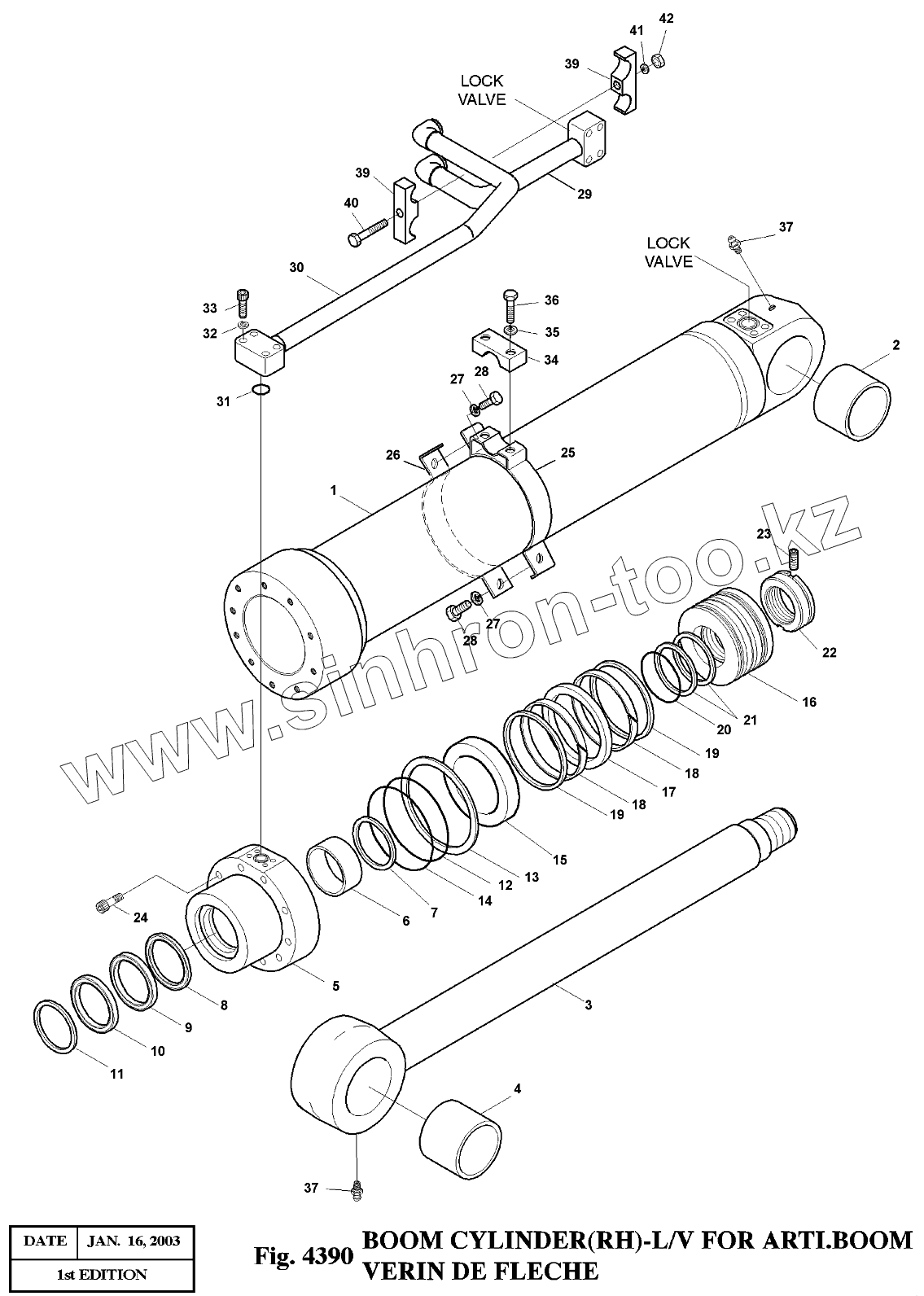 Каталог запасных частей к технике: Doosan Экскаватор SOLAR 175LC-V. 4390 Гидроцилиндр стрелы правый