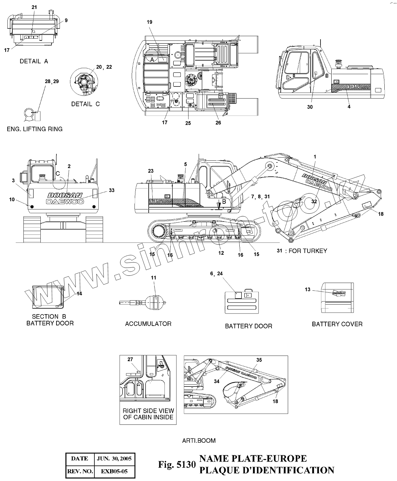 Каталог запасных частей к технике: Doosan Экскаватор SOLAR 175LC-V. 5130 Таблички
