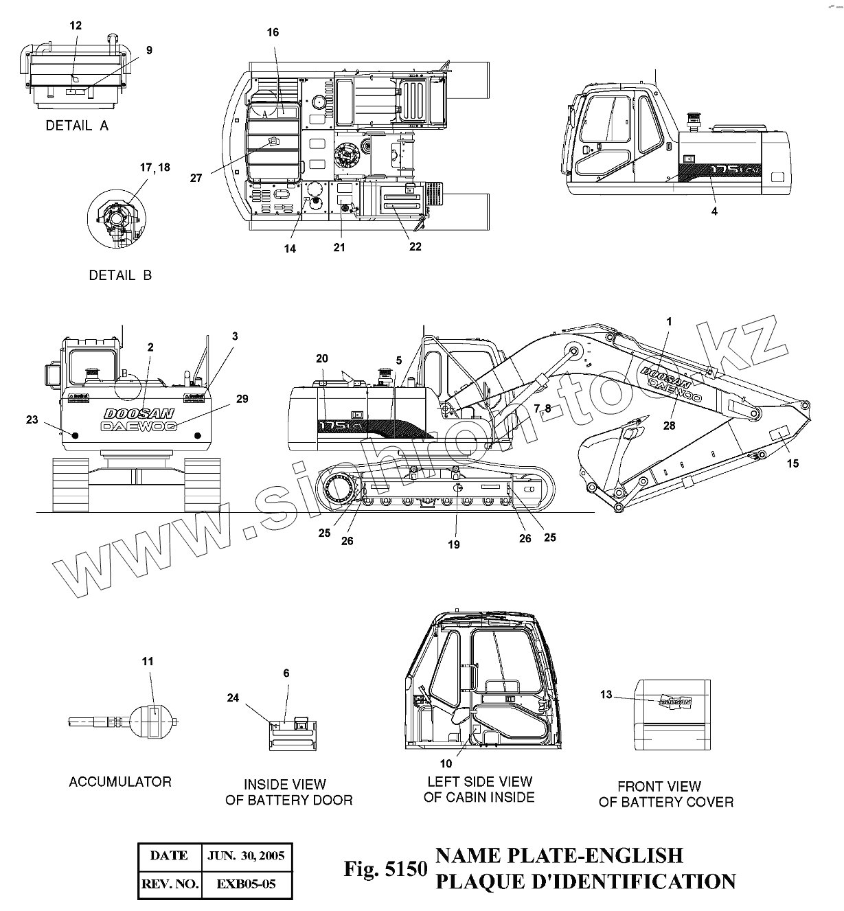Каталог запасных частей к технике: Doosan Экскаватор SOLAR 175LC-V. 5150 Таблички