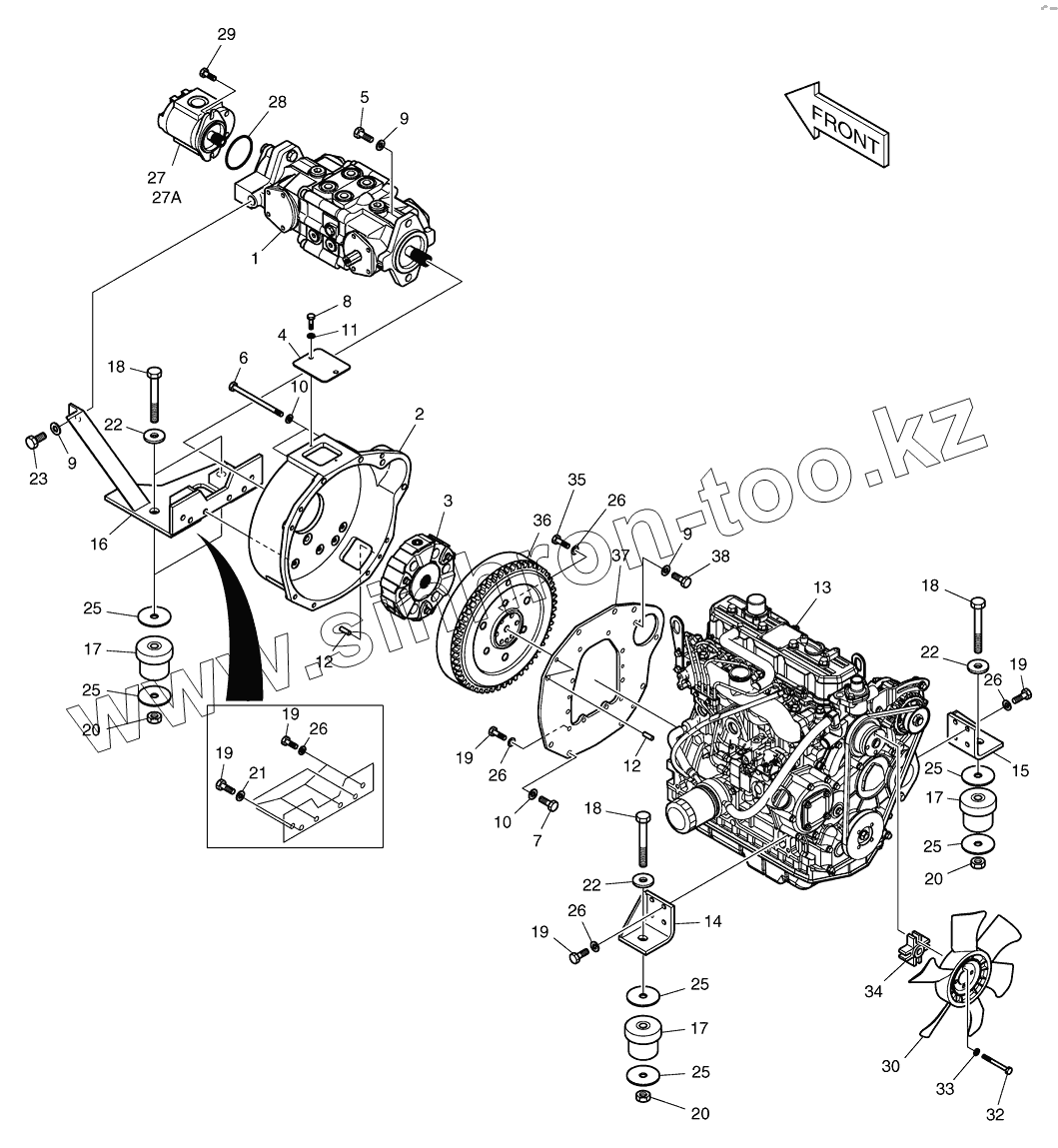 Каталог запасных частей к технике: Doosan Мини-погрузчик 430 Plus. 2100 Установка двигателя и насоса