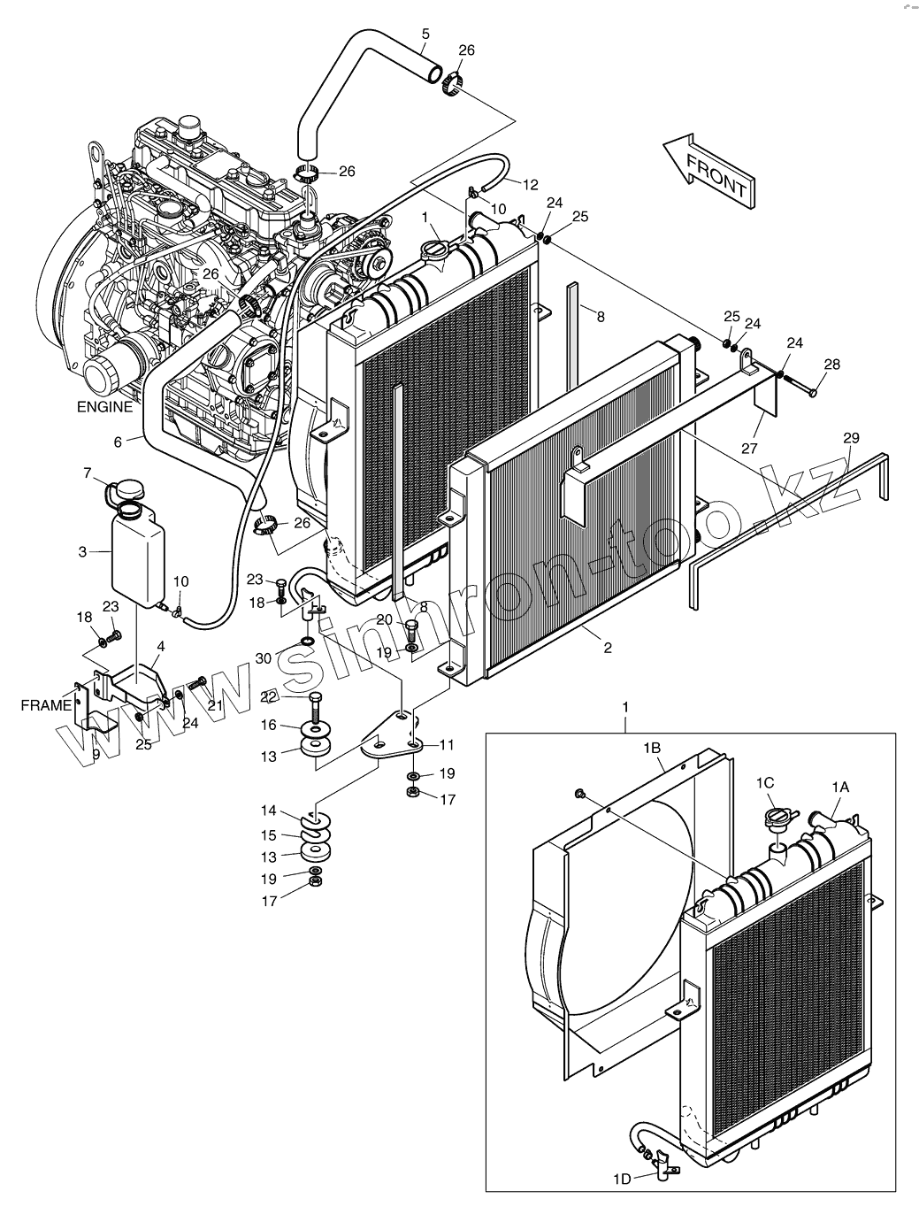 Каталог запасных частей к технике: Doosan Мини-погрузчик 430 Plus. 2130 Установка радиатора