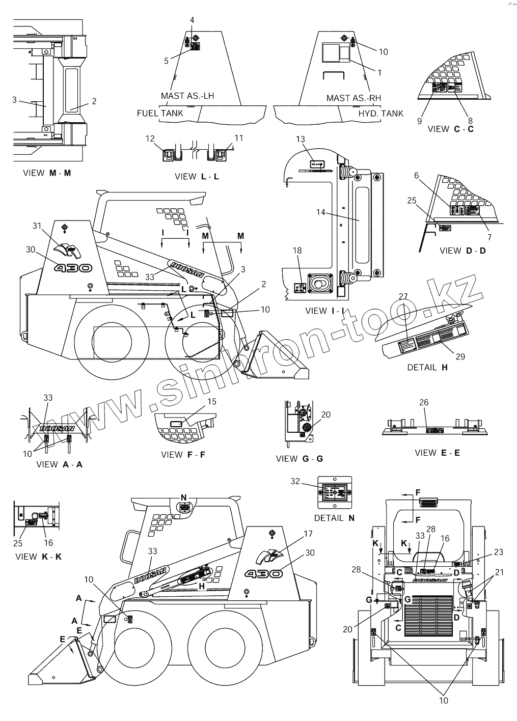Каталог запасных частей к технике: Doosan Мини-погрузчик 430 Plus. 5100 Таблички