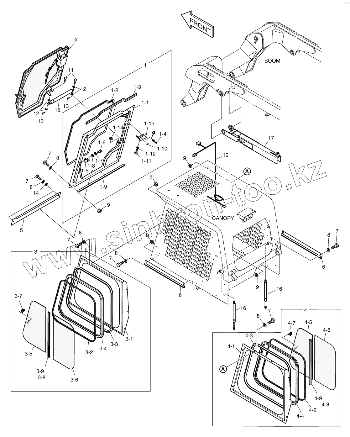 Каталог запасных частей к технике: Doosan Мини-погрузчик 430 Plus. 6270 Установка двери