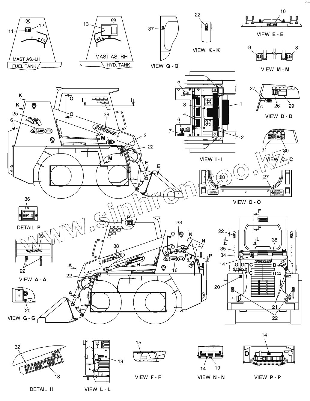 Каталог запасных частей к технике: Doosan Мини-погрузчик 450 Plus. 5100 Таблички