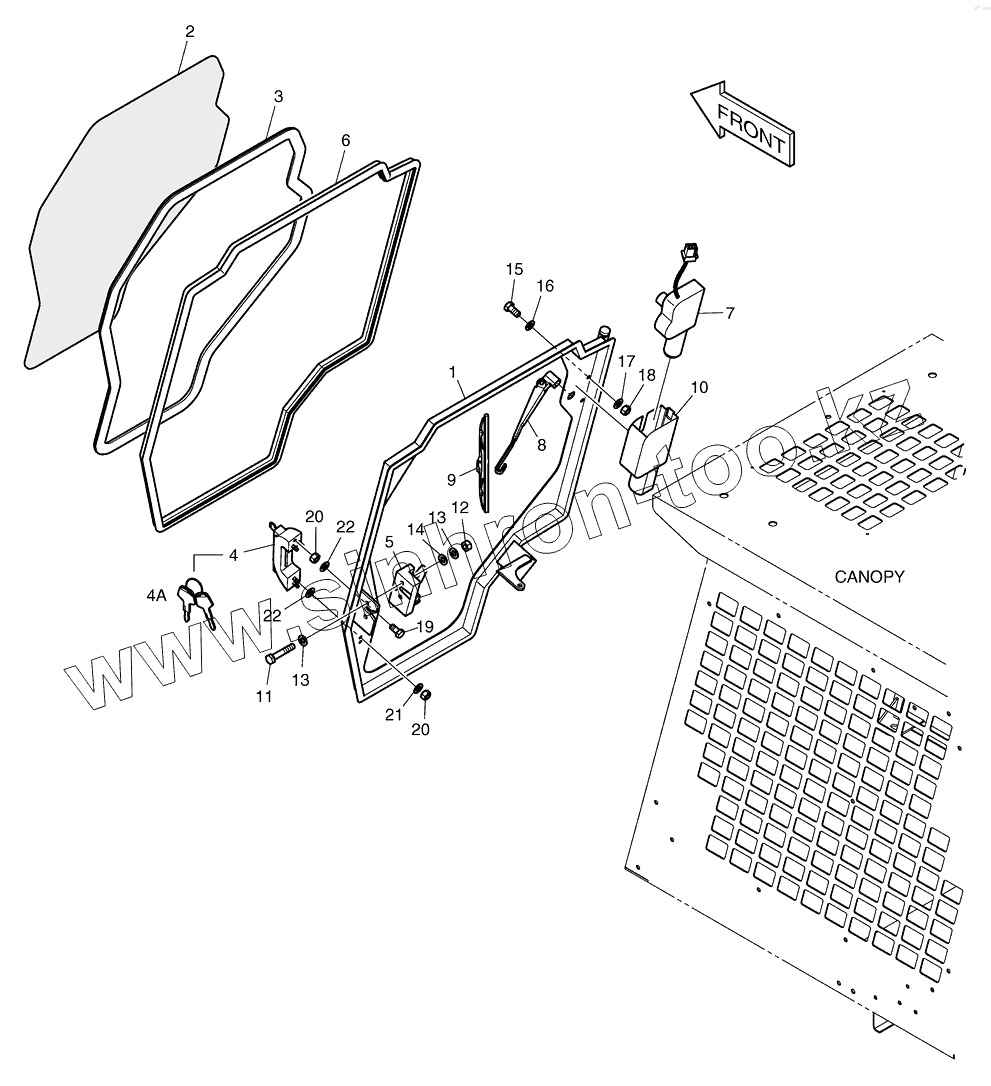 Каталог запасных частей к технике: Doosan Мини-погрузчик 450 Plus. 6270 Передняя дверь