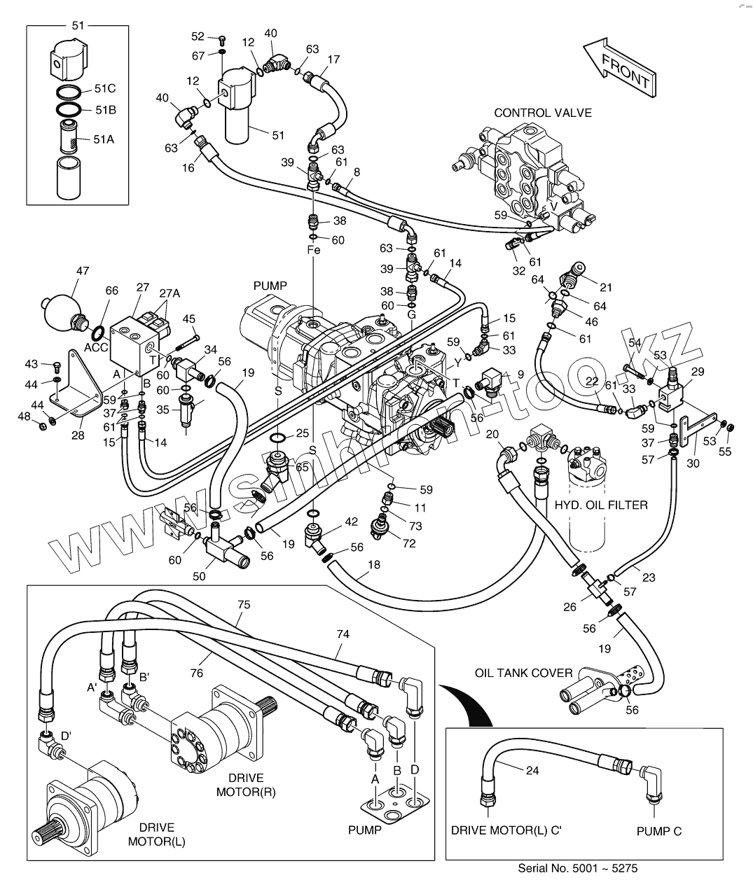 Каталог запасных частей к технике: Doosan Мини-погрузчик 450 Plus. 6540 Трубопроводы управления