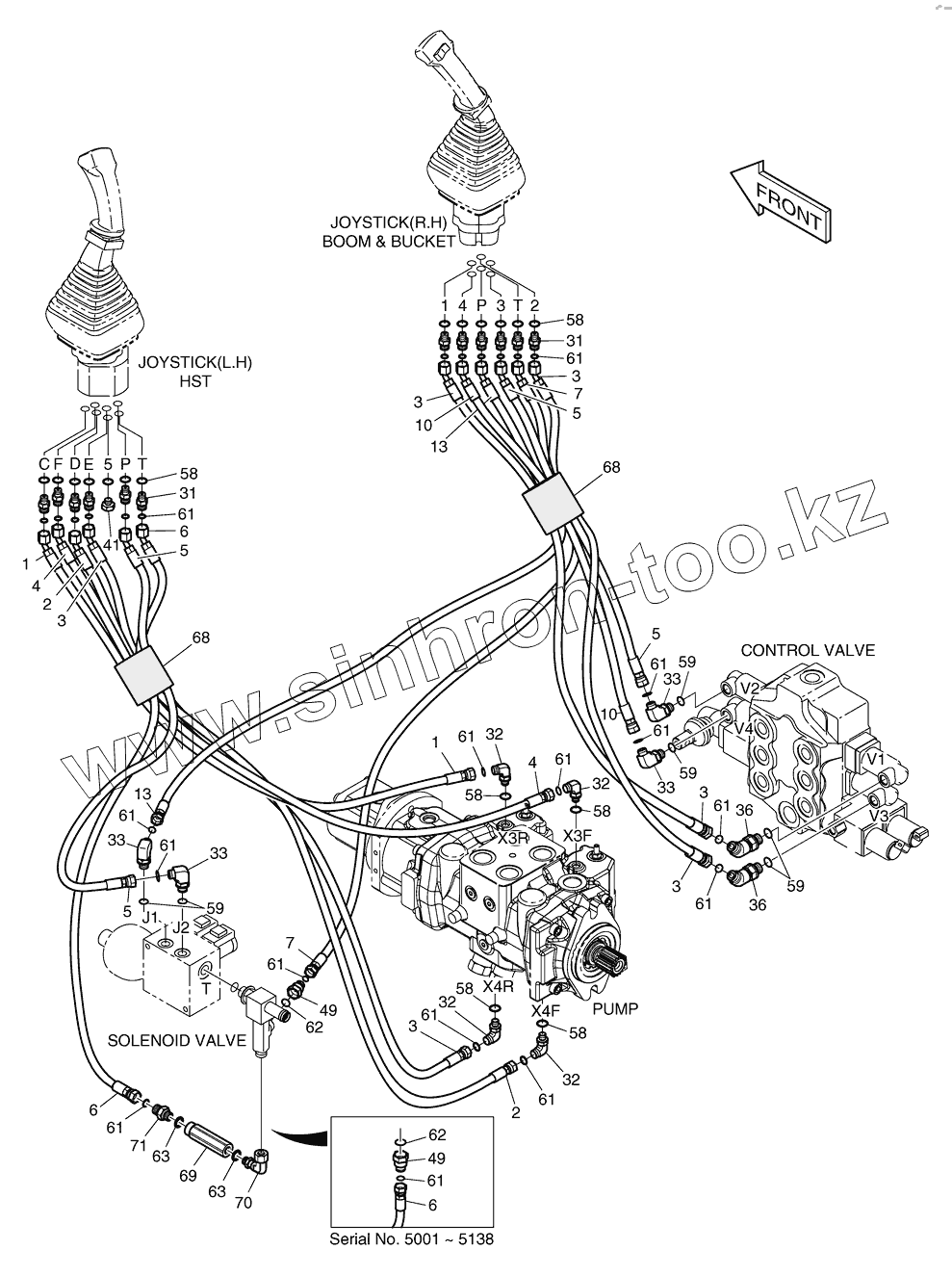 Каталог запасных частей к технике: Doosan Мини-погрузчик 450 Plus. 6550 Трубопроводы управления